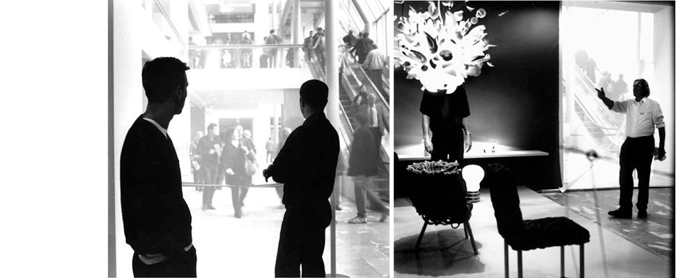 한번 전시회를 꾸며 보았습니다. 서로 모르고 있는 디자이너들인데요 제가 한번 꾸미는 것 자체를 말씀드리면, 지평선처럼 하나의 선을 놓고 그 뒤에 있는 가구들은 캄파나 형제들의 가구이고 그 위쪽에는 바로 잉고 마우러씨의